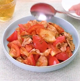 言わずと知れたトマトの栄養たっぷり摂れる豚キムチ。